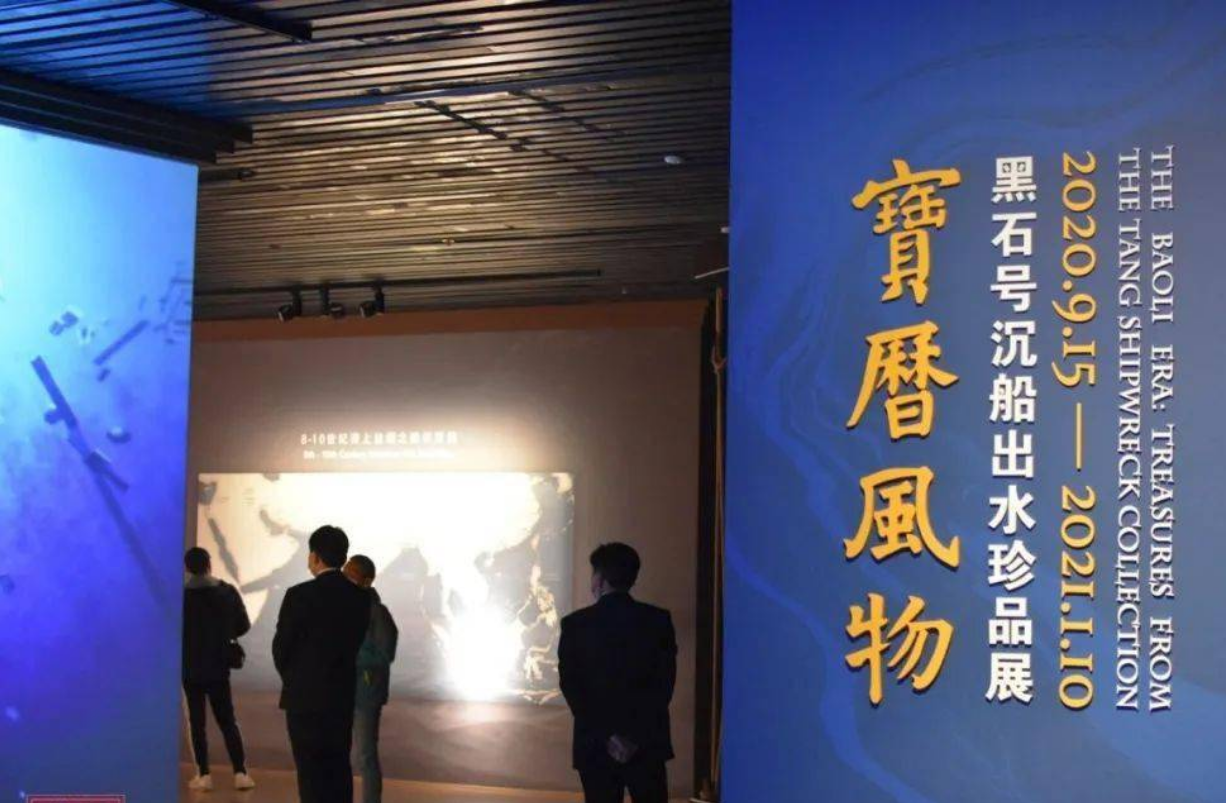 2020年9月15日,在上海博物馆的门口,一条巨大的竖幅迎风摇动,其上用金黄色笔触写就的“宝历风物”四个大字格外醒目,这一天,上海博物馆《宝历风物——黑石号出水文物珍品展》开展,这一天并非节假日,但观众们还是源源不断涌入博物馆中,想一睹离散千年的“黑石号”文物风采。