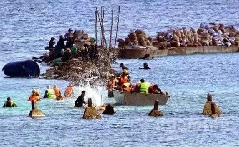 听到消息的美国发表了一通陈词滥调企图阻止我国的行动,不过所谓“破坏环境”的理由实在太蹩脚了。老大说话不管用,越南小弟坐不住了,也开始填海造陆,但是他们可没有天鲸号这样的战略武器,所以只能征集小型渔船人工搬运。