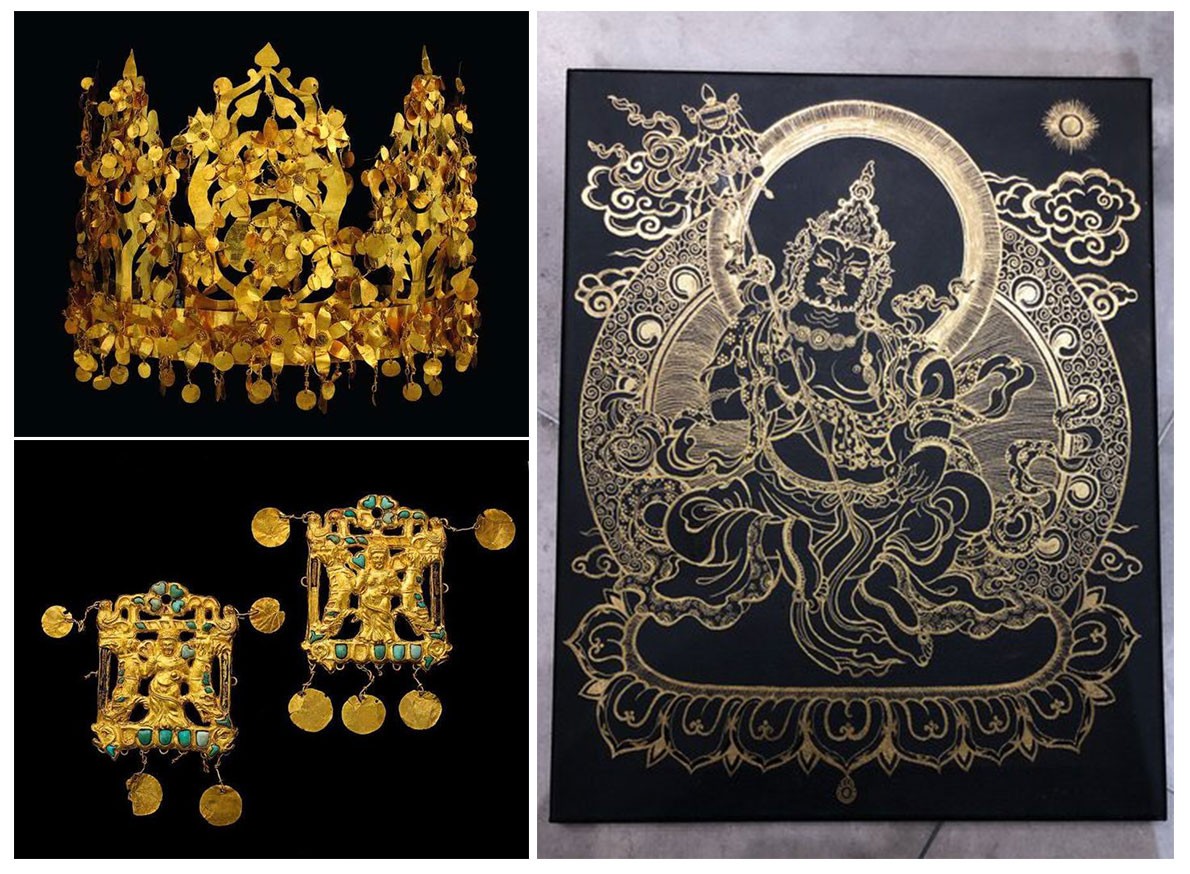 从唐卡的历史可以看出黄金自古以来受到人们的追捧,中国有明神宗朱翊钧佩戴“金丝蟠龙翼善冠”,外国有阿富汗出土黄金制品的文物。我们还常在古装剧中听到皇帝动不动就赐黄金百两,史书里也记载,汉武帝一次性打赏卫青将军20万金黄金,唐高祖犒劳自己的儿子李世民打战用了6000斤黄金,难道以前的黄金比现在更加常见?
