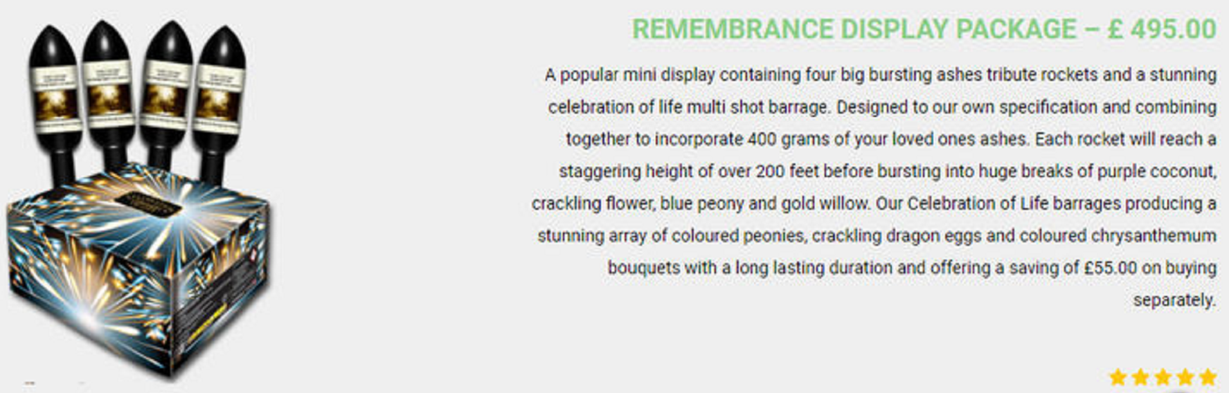 为唐娜举办烟花葬的是英国一家名叫“天堂之星烟火”(Heavenly Stars Fireworks)的殡葬公司,他们甚至为不同的顾客,提供了不同价位和服务的烟花葬。