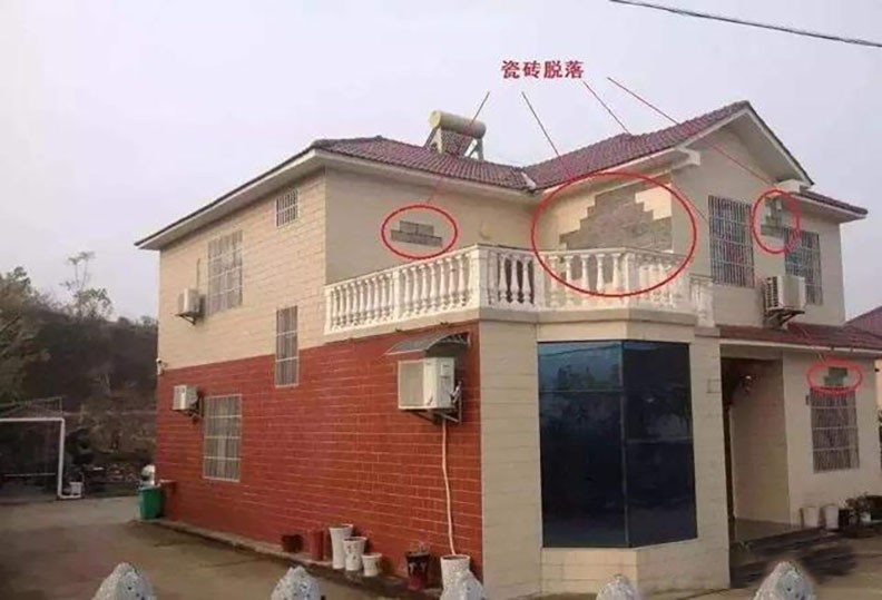 小吕家的房子当时修的时候就是外墙贴的瓷砖,刚开始几年还好,每块瓷砖都规规矩矩地贴在墙面上。可是随着时间的推移,风吹日晒雨淋,夏日暴晒冬季低温,让瓷砖变得不再牢固,有一次一块瓷砖还直接从二楼掉了下来,万幸的是没有人受伤。