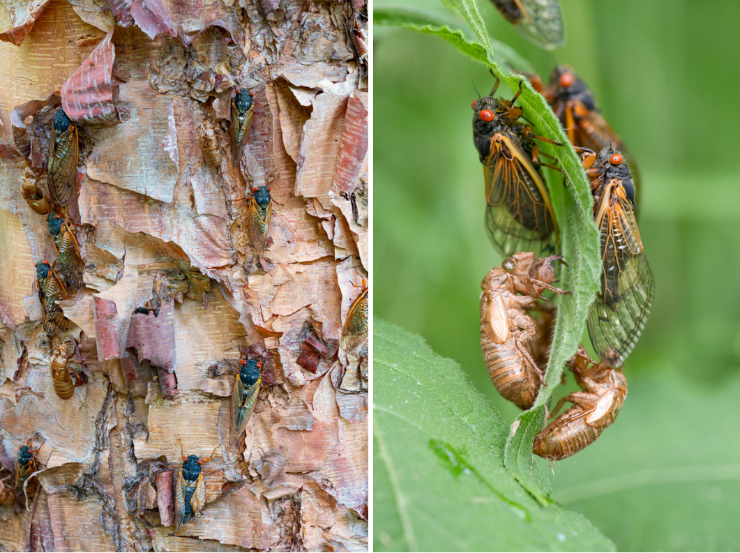 到了6月底七月初,大批的蝉已经破土而出并且成功羽化为成虫,在各种各样的地方觅食、寻找配偶。日前,美国已有15个州存在成蝉泛滥的情况,其中包括我们熟知的纽约州、新泽西州、密歇根州和印第安纳州。