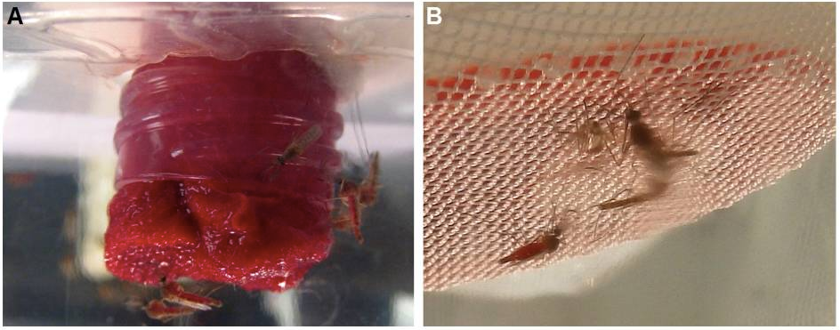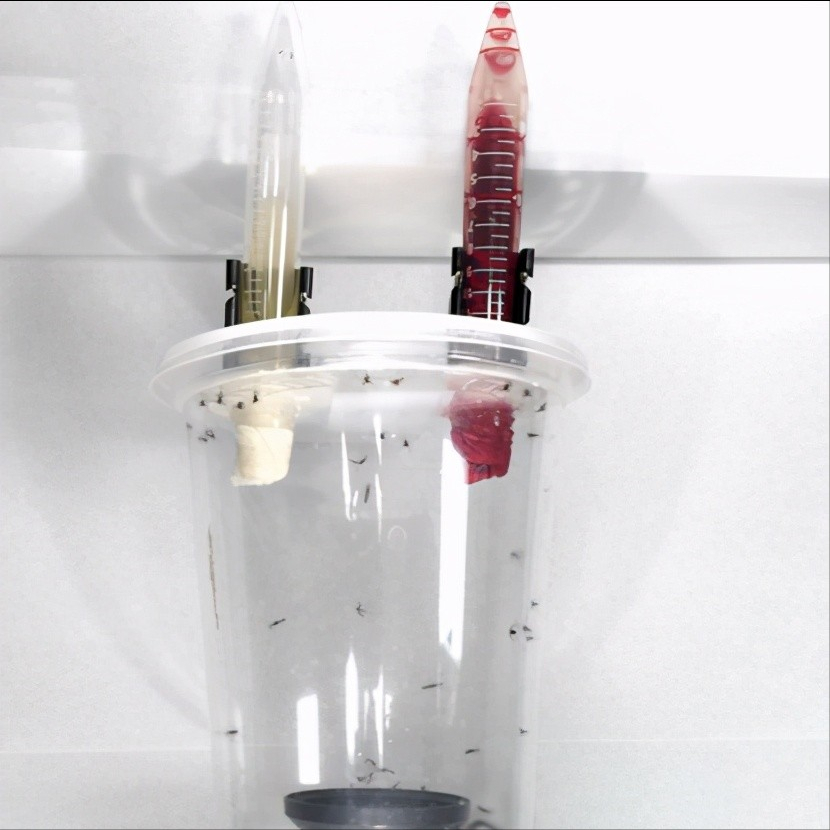 为了检测蚊子在有干扰项的前提下是否还会吸食血液,研究人员增设了两个对照组。他们特地选择了纯水、血液与糖水等比例混合的溶液混进实验的样本中,观察蚊子的取食习性。