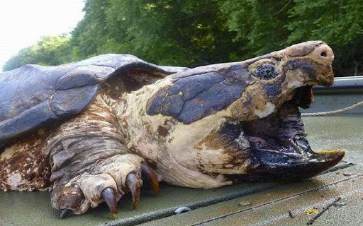 鳄龟是龟类中食肉的凶猛个体,进入中国后因为对自然水体的严重破坏被认定为入侵物种。它原产于美洲,龟壳长达70厘米。体重重达八十公斤,也有少数个体超过一百公斤。鳄龟也因此成为了世界上最大的淡水龟之一。