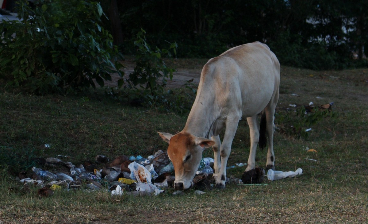 虽然牛的瘤胃液可以轻松溶解塑料制品,但这并不意味着牛可以帮忙处理塑料垃圾。在敬牛如神的印度曾发生过这样一件让人大跌眼镜的事情:一头放养母牛因在街头误食36公斤的塑料袋而生命垂危,兽医虽然通过外科手术取出了消化不了的塑料袋,但是母牛还是死了。知道这头母牛死讯的印度人呼吁严惩放养母牛的主人,要把他丢进监狱。