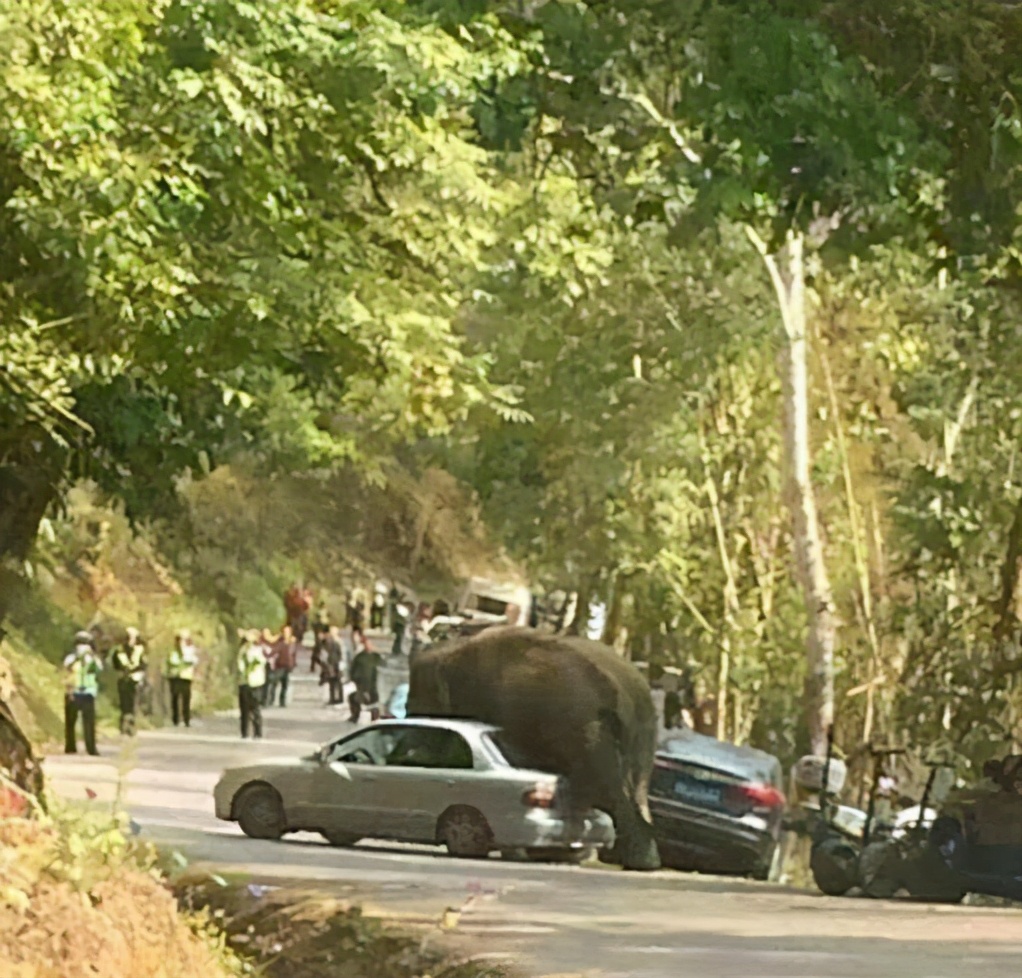 2016年2月13日,正值春节,家家户户过完年都想着出去旅游,就在这期间野象谷突然出现竹笋牙独象,攻击性较强,连续袭击了15辆汽车,野象的一顿操作导致每辆车都遭受到不同程度的损坏。