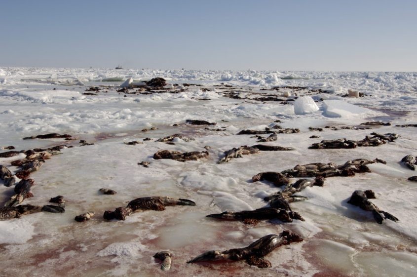 动物保护组织和加拿大政府围绕商业捕杀海豹这个事情展开了长达五十年的拉锯战。从1970年代起科学家和绿色和平组织认识到如果再不对竖琴海豹加以实质性的保护,其就会濒临灭绝。于是他们开始大范围地在民众面前举行抗议活动,给民众展示海豹被捕杀的残忍画面,并联合欧美各路社会人士及其明星呼吁一起抵抗海豹制品。通过各种宣传抵制活动,欧美民众终于认识到捕杀海豹是一件极其血腥残忍的非人道主义事件。