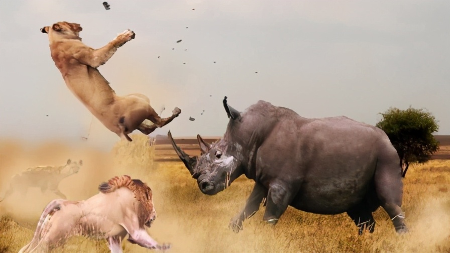 我们之前说过犀牛的脾气非常暴躁,狮子不招惹它还好,一旦把它惹火了,那翻脸可真是比翻书还快。只见它顶着头角就冲了上去,轻者被撞得五脏六腑移位,重的可能就当场开膛破肚了。为了一顿饭搭上一条命,怎么想都觉得不值。