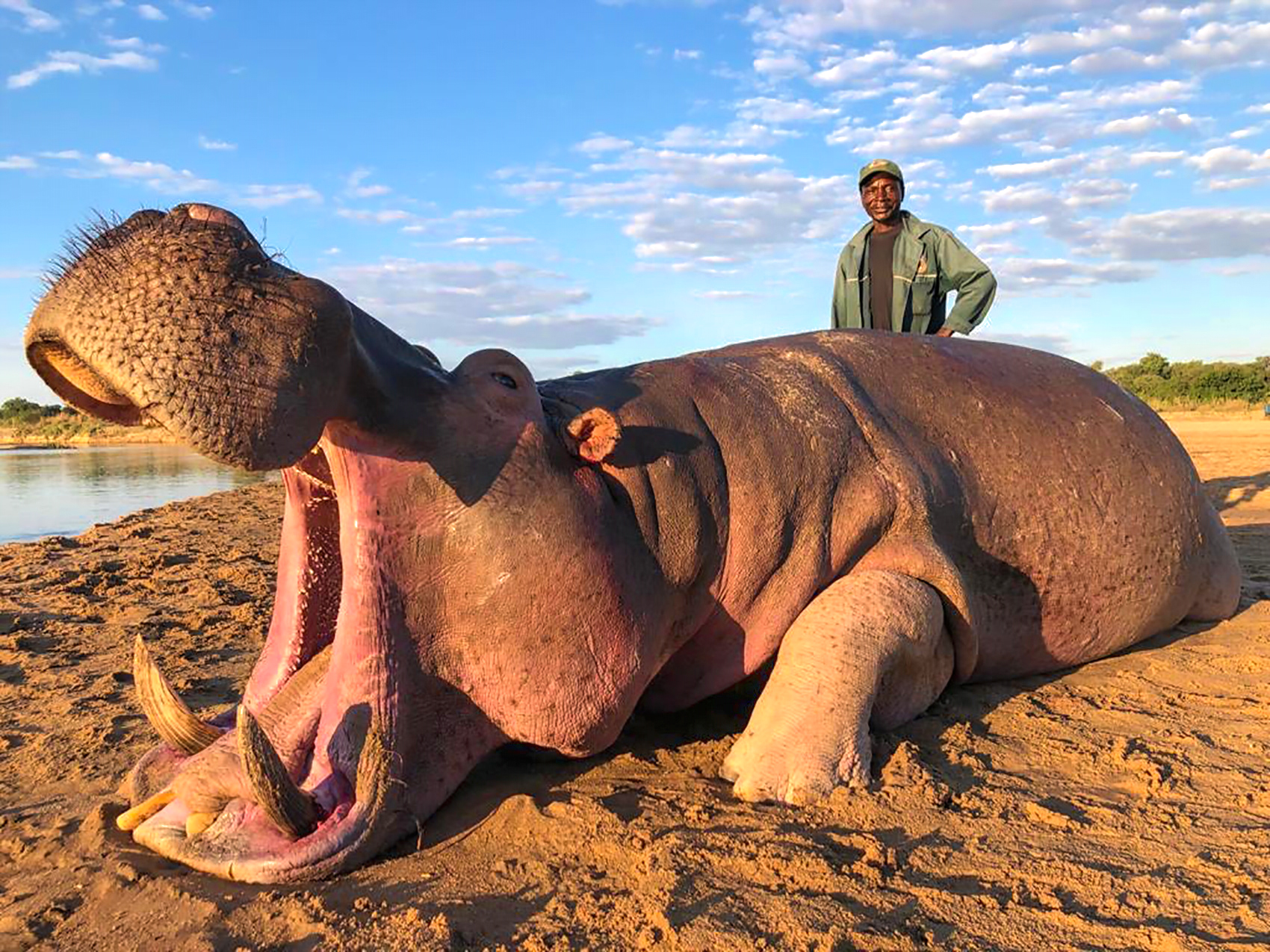 门齿和犬齿呈獠牙状,下门齿不是向上生长,而是像铲子一样平行伸出。其长度可达60至65厘米,重量为2至3千克,犬齿的长度也可以达到60厘米。且牙齿硬度极高,甚至可以弹开普通子弹。所以,河马牙齿可以轻易刺穿鳄鱼皮。